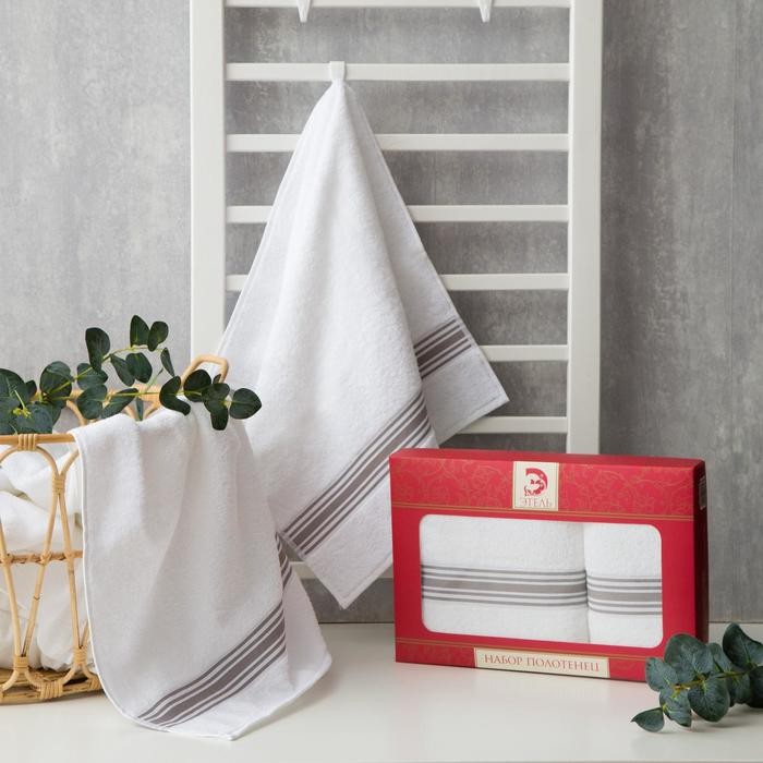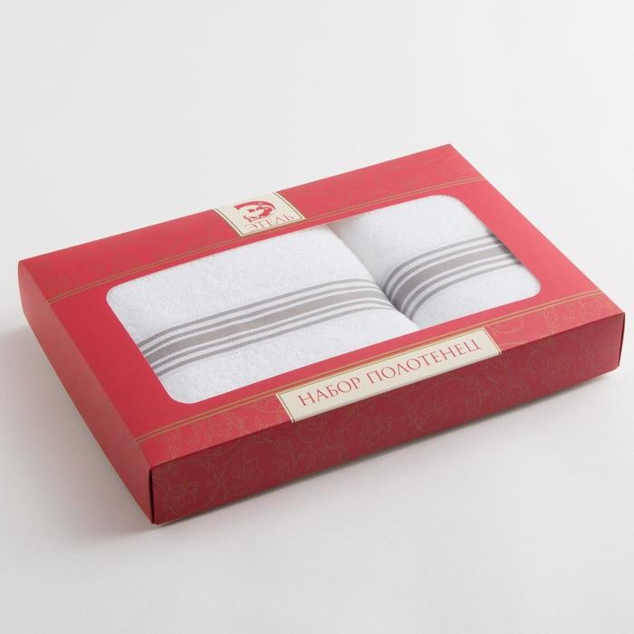 Набор полотенец Этель «Полосы» 2 шт (70×130, 50×90 см) белый/металик, 100% хлопок, 360г/м² ²