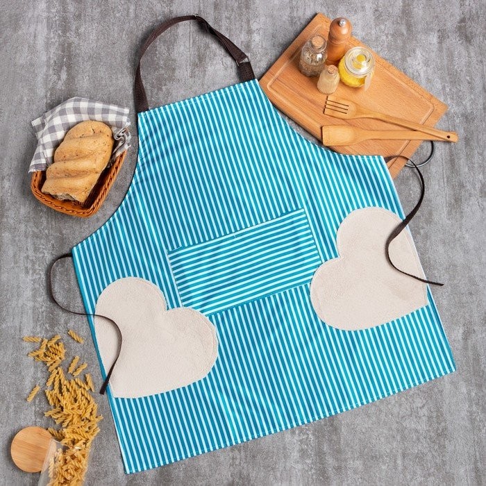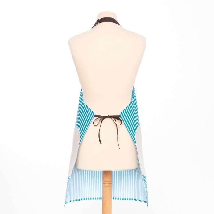 Фартук Доляна с карманами в полоску цв.синий, 70*65 см, 100% п/э