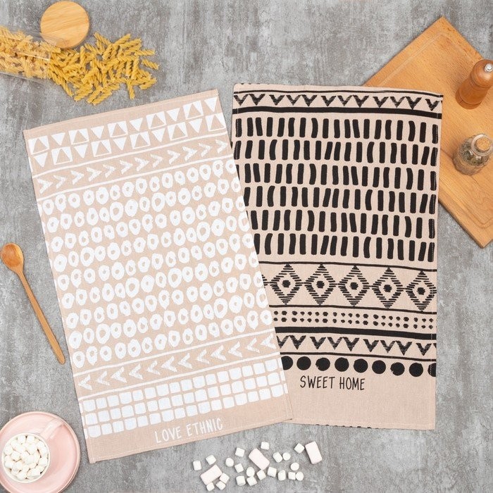 Набор кухонных полотенец Доляна LOVE ETHNIC 35х60см-2шт, 100% хл