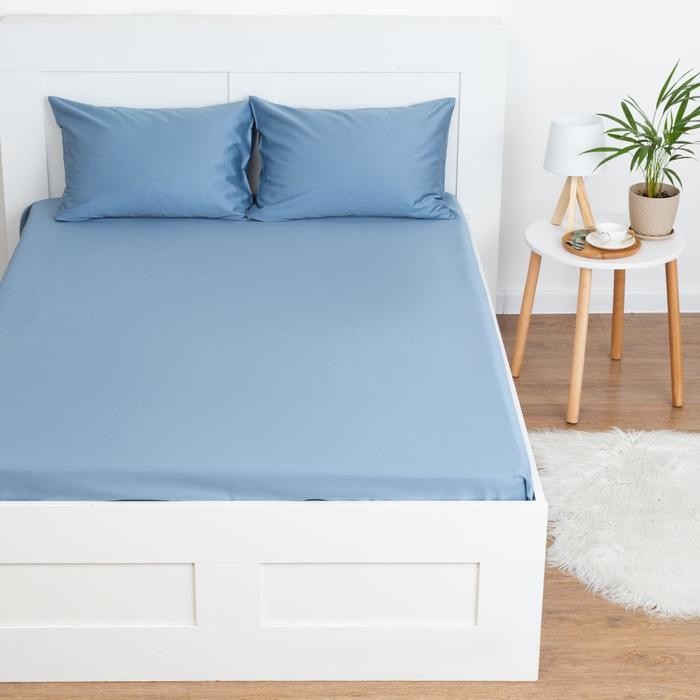 Простыня на резинке Этель 180*200*25 см, цв.небесный, 100% хлопок, мако-сатин, 125 г/м²