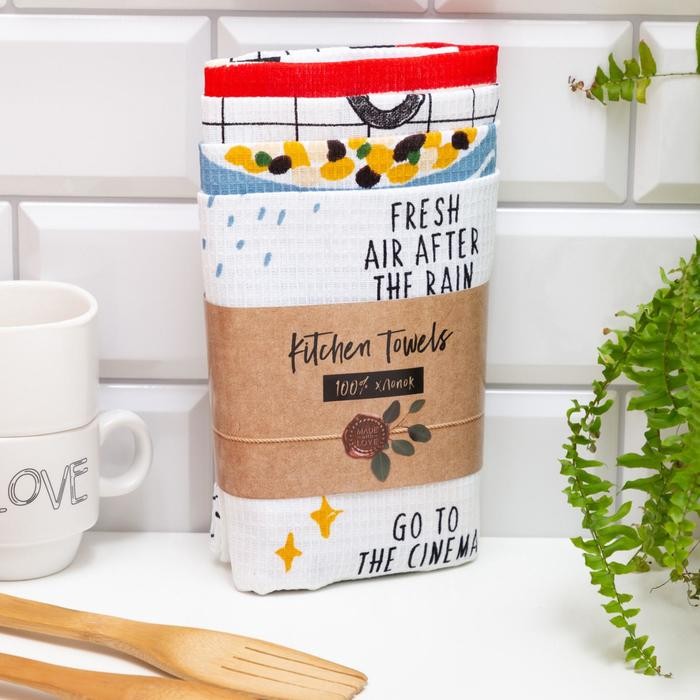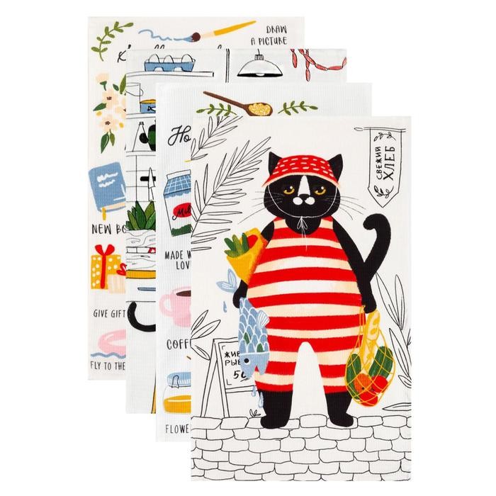Набор кухонных полотенец Доляна Happiness, 35х60см-4шт, 100% хл