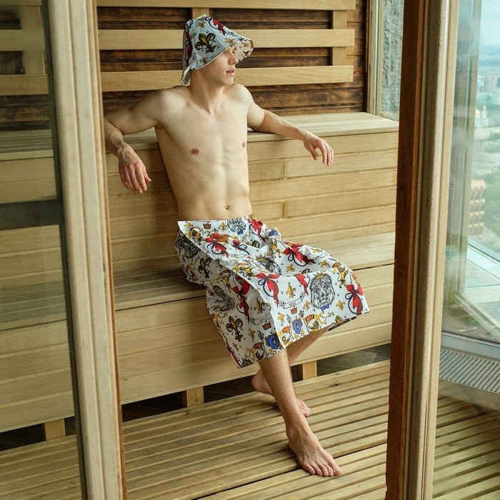 Набор для сауны Этель «Настоящий мужчина» килт 75*144 см + шапка, вафля 200г/м2, 100% хл