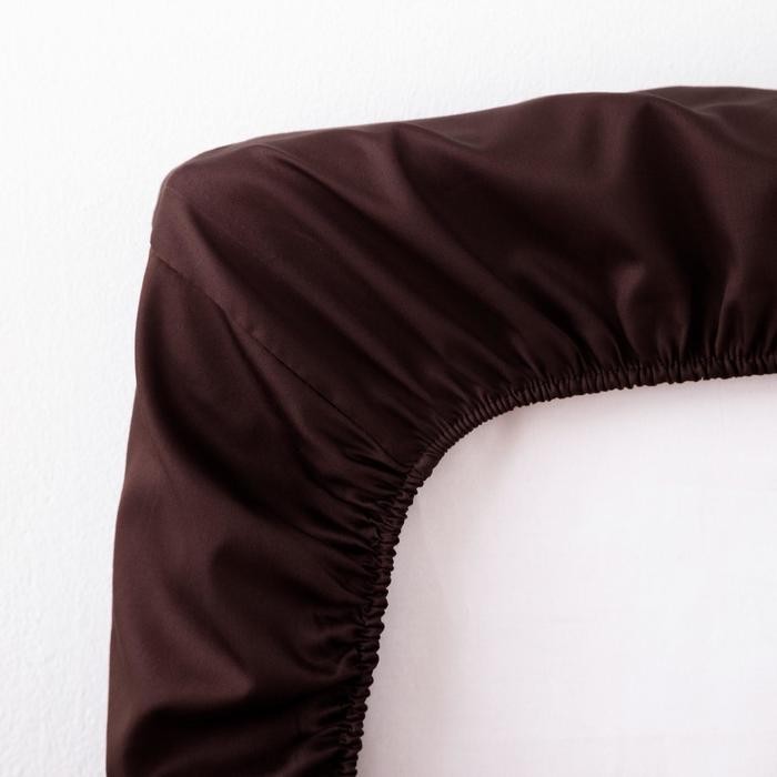 Простыня на резинке Этель 200*220*25 см, цв.темно-коричневый, 100% хлопок, мако-сатин, 125 г/м² 5373