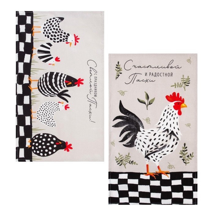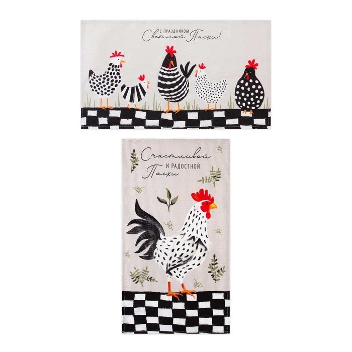 Набор кухонных полотенец Доляна «С праздником Светлой Пасхи», 35х60см-2 шт, 100% хл, вафля 160 г/